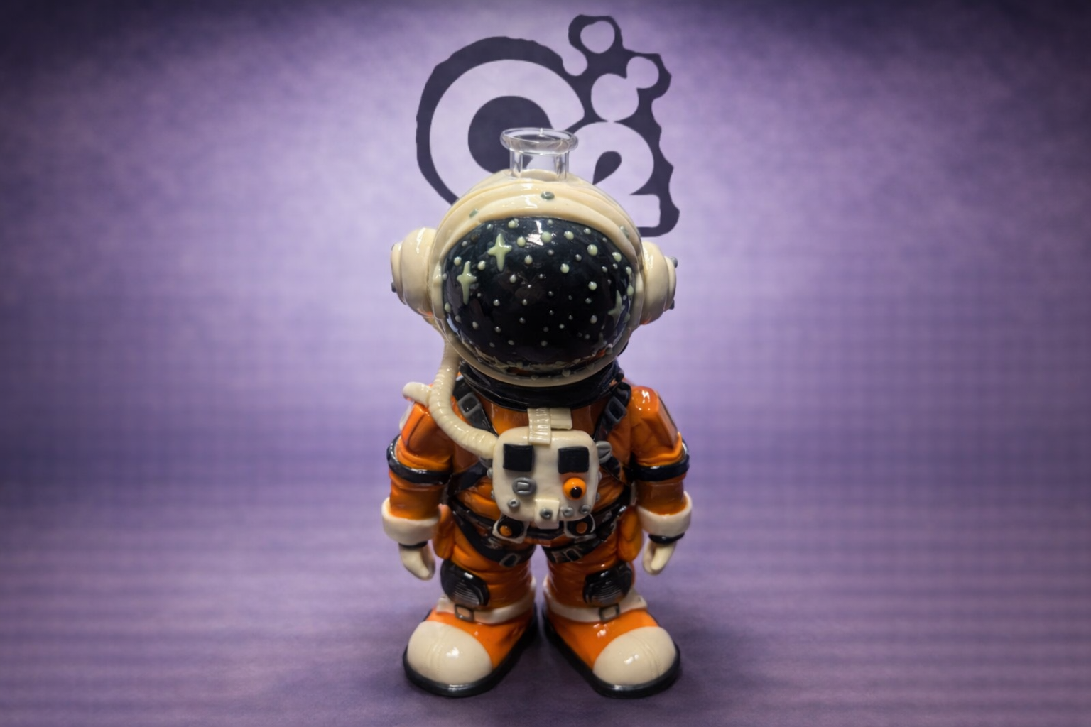 The Astronaut Figure Glass Water Pipe is a detailed novelty piece that blends imaginative design with smooth, water-filtered performance. Shaped like a standing astronaut in a full space suit, this piece features sculpted details throughout, including a star-speckled helmet and utility pack, making it a strong visual standout.