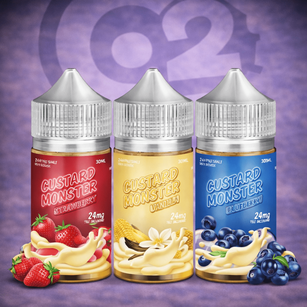 Custard Monster Salts are premium nicotine salt e-liquids featuring rich, creamy custard flavor profiles with smooth nicotine delivery. Each blend combines velvety vanilla custard with balanced sweetness and cream notes, creating a satisfying vape that’s rich without being overpowering.