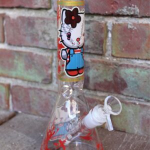 The Killer Kitty Beaker Water Pipe blends playful design with classic performance. Standing at 10 inches tall, this durable borosilicate glass piece features bright Hello Kitty-inspired artwork and red accent graphics. The wide beaker base provides excellent stability and smooth filtration, while the removable downstem and bowl make it easy to clean and maintain.