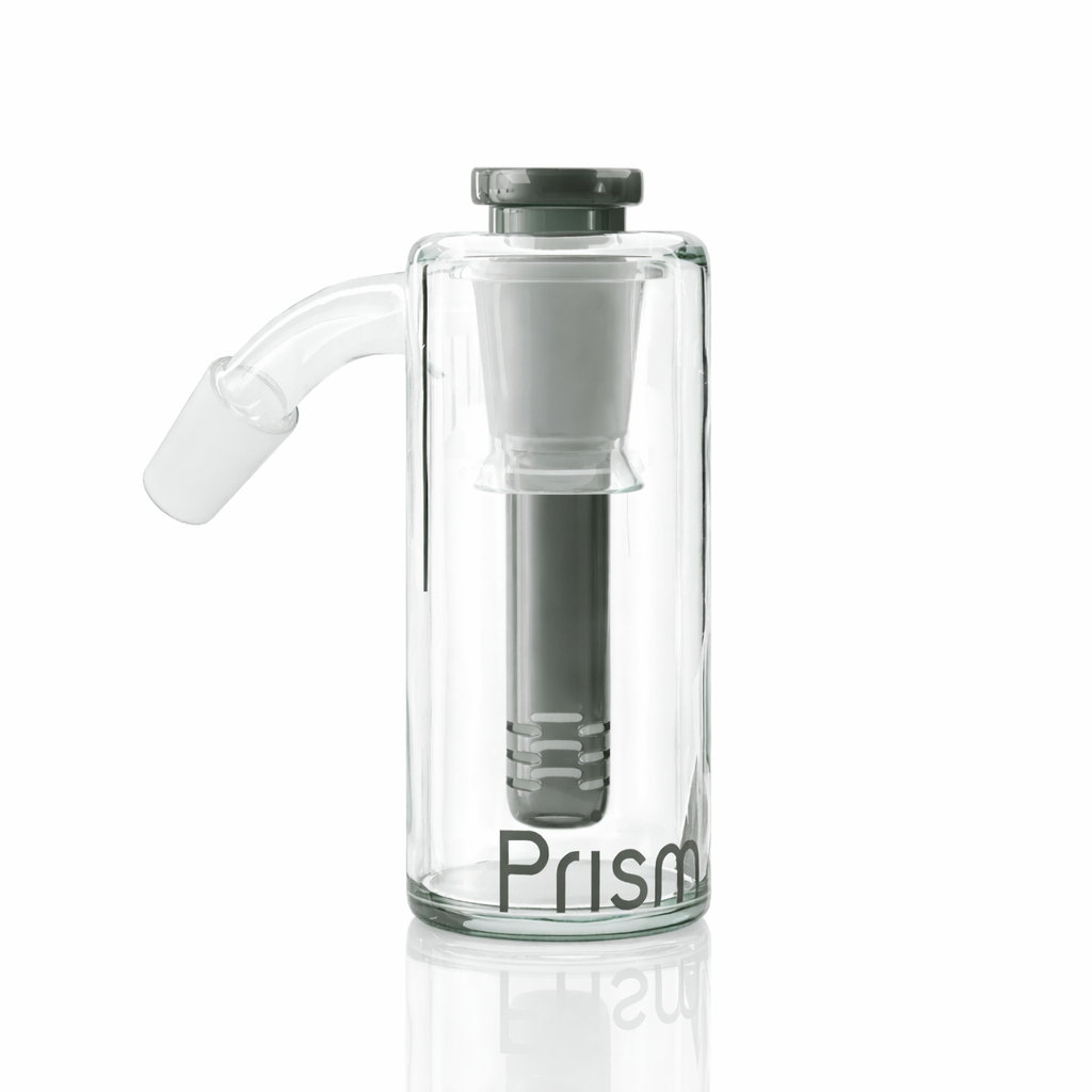 The Prism Ash Catcher is a glass attachment designed to add an extra level of filtration to a water pipe while helping keep the main piece cleaner. The ash catcher connects between the bowl and the water pipe, trapping ash and debris before it reaches the base.