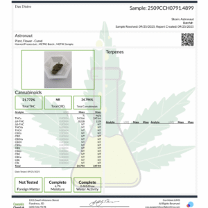 This strain delivers an uplifting, clear-headed onset followed by a calm, relaxed body effect that stays balanced and functional. Astronaut is well suited for both daytime and evening use, making it a versatile option for a wide range of customers.