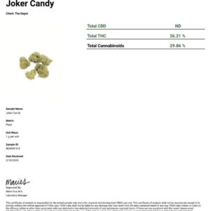 Joker is an indica-leaning hybrid that blends sweet candy notes from White Runtz with gassy, creamy undertones from Jet Fuel Gelato. The buds are dense, frosty, and resin-heavy, delivering a smooth, flavorful smoke with a dessert-forward profile and light fuel finish.