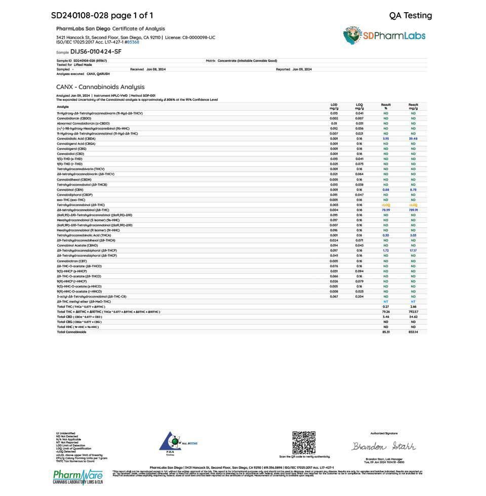 Ultra pure distillate ran Delta 8 THC, THCP and THCA Diamonds boosted with High Terpene Live Resin Extract and True Terpenes gives this blend incredible taste and extended effects.