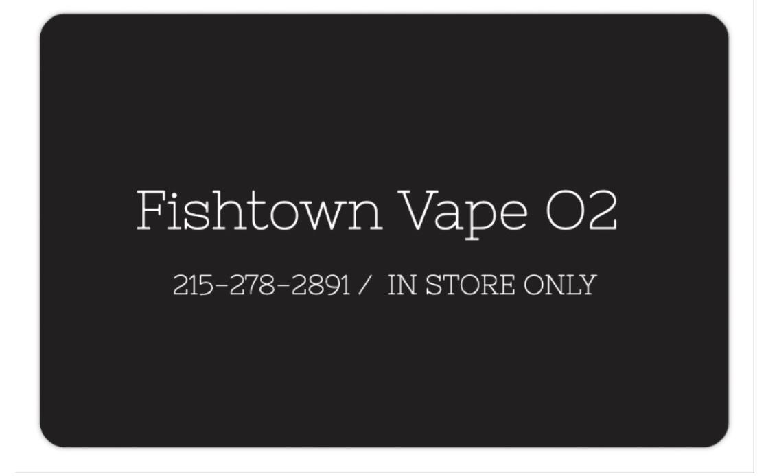 Looking for the perfect gift for any vape enthusiast? Our VapeO2 Gift Cards make it easy to share the experience. Whether it’s for a friend, family member, or just to treat yourself, these cards can be used toward any in-store purchase at our Fishtown location only.