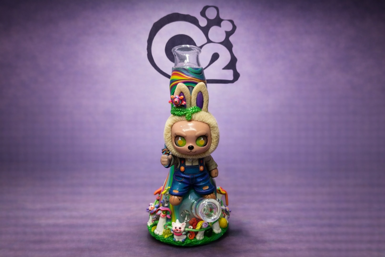 Crafted primarily from thick glass, this water pipe includes a vertical chamber for effective cooling and filtration, along with a removable glass bowl for clean flavor and easy maintenance. The sculpted base provides stability, while the detailed character and environment give it strong visual appeal that immediately catches attention.